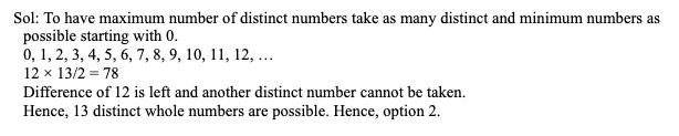 Q4. The average of 20 whole numbers is 4.5. The maximum number of distinct numbers among these 20 whole numbers can be: