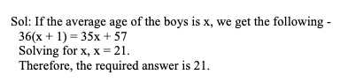 Q15. The warden of the boy’s hostel at National College of Engineering, Patna was trying to calculate the average age of the 35 boys living in the hostel. By mistake, he included himself with the group of boys, as a result, the average age increased by one year. If the warden is 57 years old, what is the average age of the boys living in the hostel?