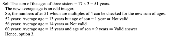 Q22. The average age of three sisters is 17 years. If the age of the brother is included, the average age of the 4 persons remains an odd number. What can be the minimum age of the brother (in years) if his age is not less than 2 years?