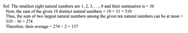 Q24. The average of 10 distinct natural numbers is 31. What can be the maximum average of two largest numbers among these ten numbers?