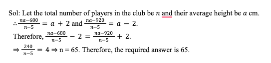 Q25. Volleyball players of a club, all of distinct heights, are standing in the descending order of their heights from left to right. If we do not include the first 5 players from the right, the average height of the players increases by 2 cm, and if we do not include the first 5 players from the left, the average height of the players decreases by 2 cm. If the sum of the height of the first 5 players from the left is 920 cm and that from the right is 680 cm, then find the total number of players of the club.