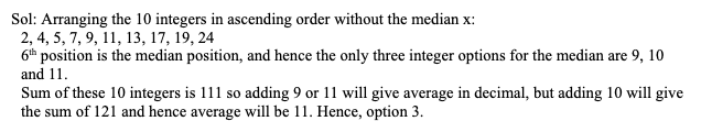 Q26. If ‘x’ is the median of the integers {11, 13, 4, 9, 7, 19, 2, 5, 24, 17, x}, which of the following could possibly be average of all values of the set?