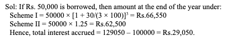 Q30. A money lender lends money under Scheme I at the rate of 30% per annum, where interest is compounded every four months and under Scheme II at the rate of 25% per annum compounded annually. If Ishan borrows Rs.50,000 each under Schemes I and II, then find the total interest (in Rs.) accrued at the end of one year.