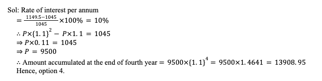Q4. Suman borrowed Rs.1.5 lakh at 12% per annum compound interest for two years. Instead of repaying the entire amount at the end of the second year, he repaid an installment of Rs.1 lakh at the end of the first year and the remaining at the end of the second year. Find the amount (in Rs.) that saved in this manner.