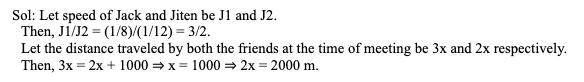 Q26. Jack runs after his friend, Jiten, who is 1000 meters ahead, at a speed of 1 kilometre every 8 minutes. Jiten runs at a speed of 1 kilometre every 12 minutes. How much distance (in meters) has Jiten covered at the point when Jack overtakes him?