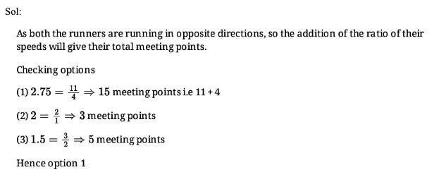 Q35. A circular track is marked with numbers from 1 to 15 so as to divide the track into 15 equal parts. Two runners started simultaneously from the point marked as 1 and run in opposite directions. After running for several hours, they noticed that they cross each other only at these 15 marked points and also that they crossed each other at each of these 15 points at least once. Which of the following is a possible value of the ratio of the speeds of the faster runner to the speed of the slower runner?
