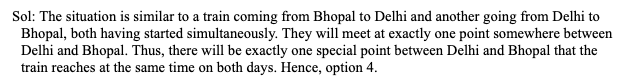 Q61. A train started from Delhi at 7 AM and reached Bhopal at 3 PM. The next morning it started from Bhopal at 7 AM and reached Delhi at 3 PM using exactly the same route. Which of the following is definitely true?