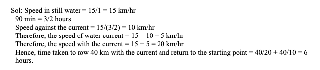 Q83. A man rows 15 km in 1 hour in still water and in 90 minutes against the current. Find the time (in hours) taken by him to row 40 km with the current and return to the starting point.