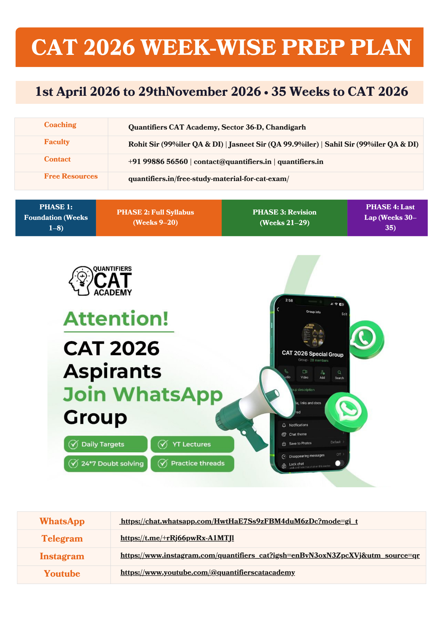 Download this structured study plan covering all sections—VARC, DILR, and QA — integrating Quantifiers' resources to guide you towards a top percentile in CAT 2025.