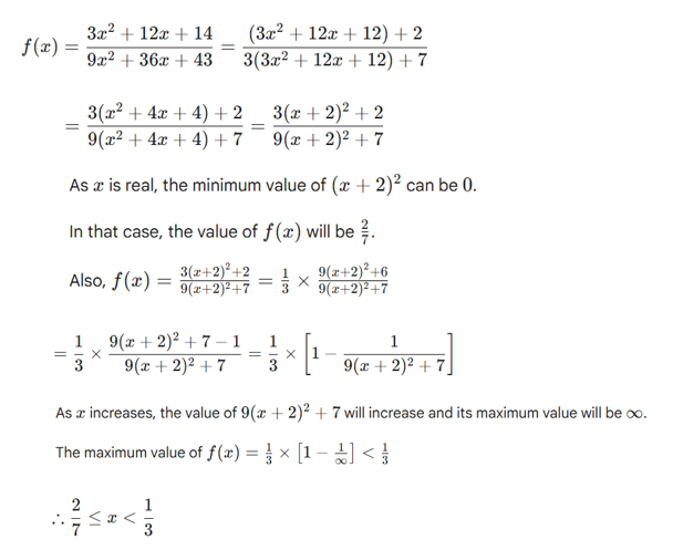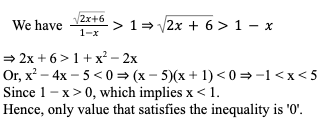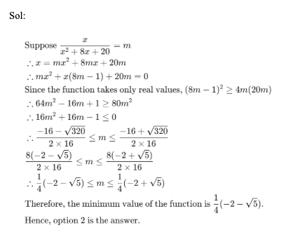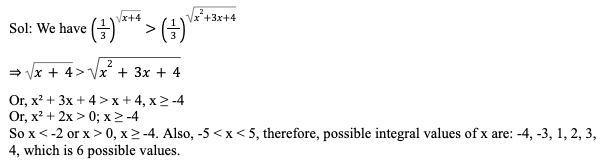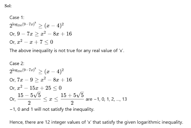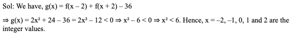 Q3. Let f and g be a real valued functions defined as f(x) = x2 + 8 and g(x) = f(x – 2) + f(x + 2) – 36. For how many integral values of ‘x’, g(x) < 0?