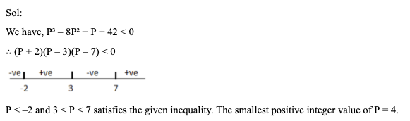 Q9. If P3 – 8P2 + P + 42 < 0, then what is the smallest positive integer value of P?
