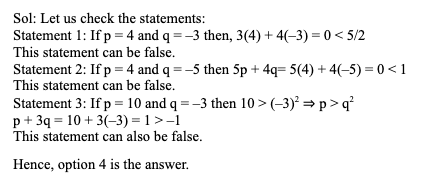 Q19. If p > 3 and q < ‒1, then which of the following statements is always true?