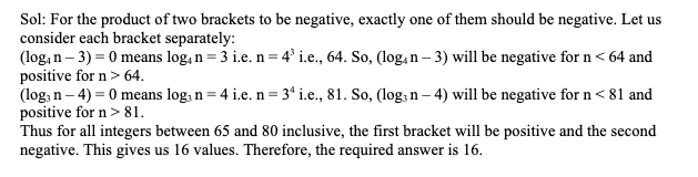 Q26. If ‘n’ is an integer such that (log4 n – 3) (log3 n – 4) < 0, then the number of possible values of ‘n’ is: