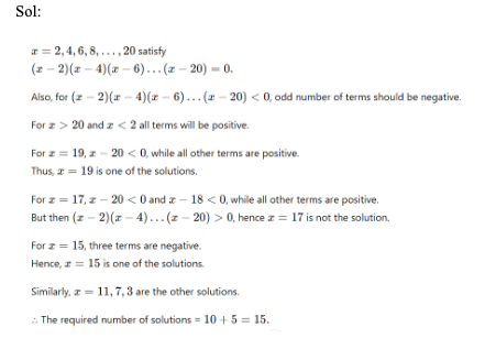 Q28. (x – 2) (x – 4) (x – 6) (x – 8) …………….. (x – 20) ≤ 0. How many integer values of x satisfy the given equation?