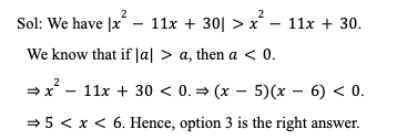 Q34. If |x2 – 11x + 30| > x2 – 11x + 30, then which of the following statements is true?