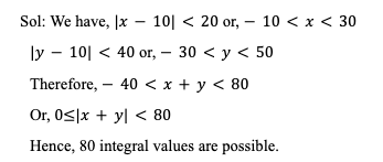 Q35. If |x – 10| < 20 and |y – 10| < 40, then the number of integral values |x + y| can take is: