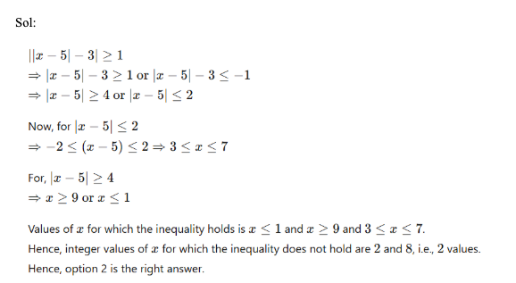 Q38. If ||x – 5| – 3| ≥ 1, find the number of integral values of ‘x’ which doesn’t satisfy the inequality.