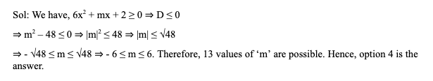 Q42. If 6x2 + mx + 2 ≥ 0 for all real ‘x’, then how many integer values of can ‘m’ take?