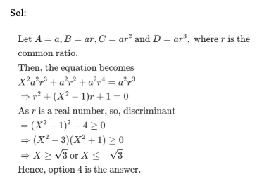 Q44. If A, B, C and D are distinct real numbers in geometric progression such that for every real X,