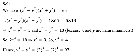 Q15. If x4 – y4 = 65, where x and y are natural numbers, then the value of the expression x4 + y4 is: