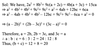 Q21. Find the value of (b + c) if a = 24 and 2a2 + 8b2 + 9c(a + 2c) = 4b(a + 3c) + 15ca, where a, b, c are real.
