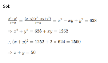 Q24. The product of two positive numbers is 624. If the ratio of the sum of their cubes to their sum is 628: 1, then the sum of the two numbers is: