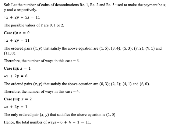 Q9. If Neeta has coins of denominations Re. 1, Rs. 2 and Rs. 5, in how many ways can she make a payment of exactly Rs. 11?
