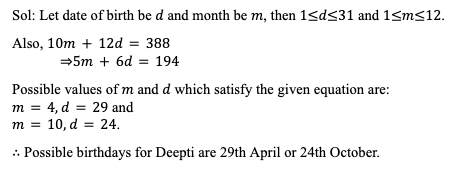 Q44. Deepti said to Bhavya, “When 10 times the month number of my birth added to 12 times the date of my birth, the result comes out to be 388”. On which of the following days could Deepti be celebrating her birthday?