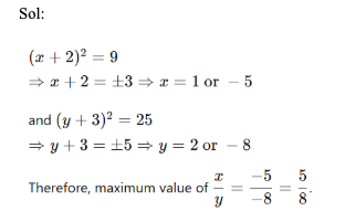 Q45. If (x + 2)2 = 9 and (y + 3)2 = 25, then the maximum value of x/y is: