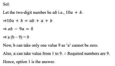 Q53. Number of two-digit numbers which are equal to the sum of the product of their digits and the sum of their digits is: