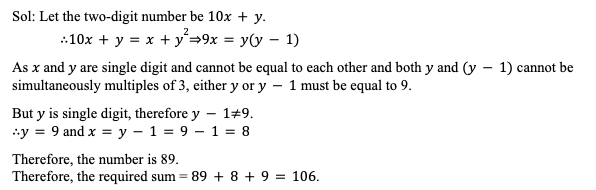 Q55. If a two-digit number is equal to the sum of its tens place digit and the square of its units