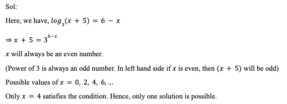 Q14. Find the number of solutions of the equation log3 (x + 5) = 6 – x.