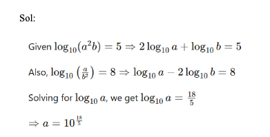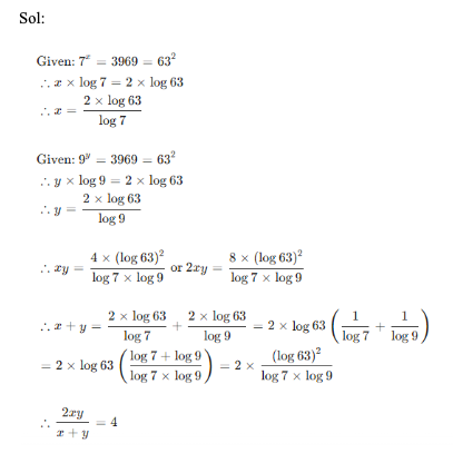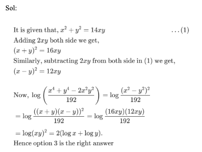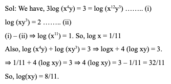 Q16. If log (x4y) = 1; log (xy3) = 2, what is the value of log(xy)?