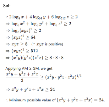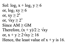 Q18. If log2 x + log2 y ≥ 6, then what is the least value of x + y?