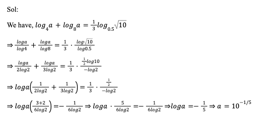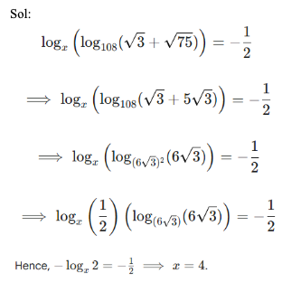 Q3. What is the value of x, if logx (log108 (√3 + √75)) = –1/2?