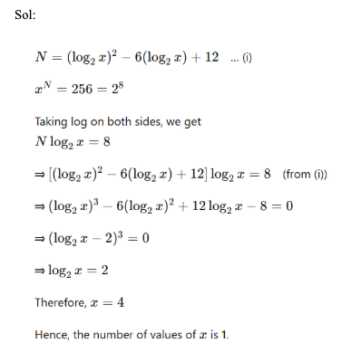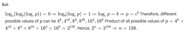 Q6. Let loga (logb (logc p)) = 0, where a, b and c assume distinct values among, 4, 8 and 16 only. If the product of all possible values of ‘p’ is equal to 2n, then what is the value of ‘n’?