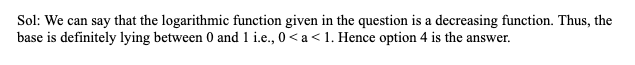 Q21. It is given that X and Y are two distinct natural numbers. Which of the following can be the value of ‘a’ given that loga X > loga Y implies X < Y?