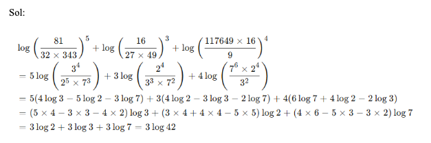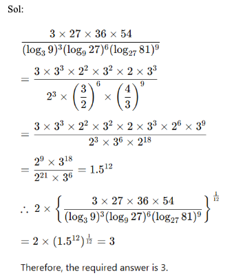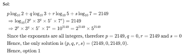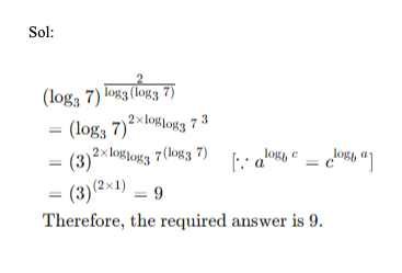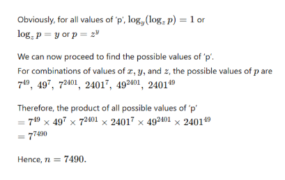 Q38. Given that logx (logy (logz p)) = 0, where each of x, y and z can assume distinct values among 7, 49 and 2401 only. If the product of all possible values of ‘p’ is represented in the form of 7n, then what is the value of ‘n’?