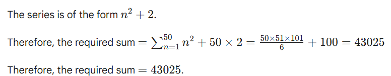 Q2. What is the sum of the first 50 terms of the series 3, 6, 11, 18, 27, …….