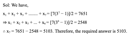Q23. If 2(x1 + x2 + x3 + … + xn) = 7(3n – 1), for every n ≥ 1, then x7 equals: