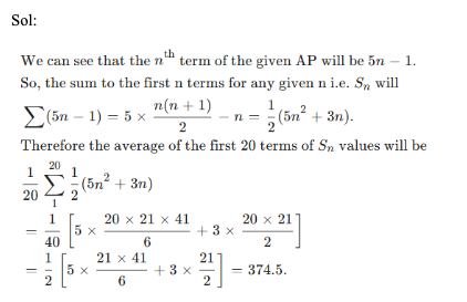 Q22. Consider the arithmetic progression 4, 9, 14, … and let Sn denote the sum of the first ‘n’ terms of this progression (so S1 = 4, S2 = 4 + 9, S3 = 4 + 9 + 14 and so on). Then the average of the first twenty values of Sn will be: