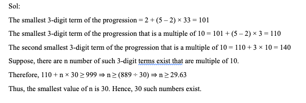 Q25. The number of 3-digit terms in the arithmetic progression 2, 5, 8, ….. , that are multiple of 10 is: