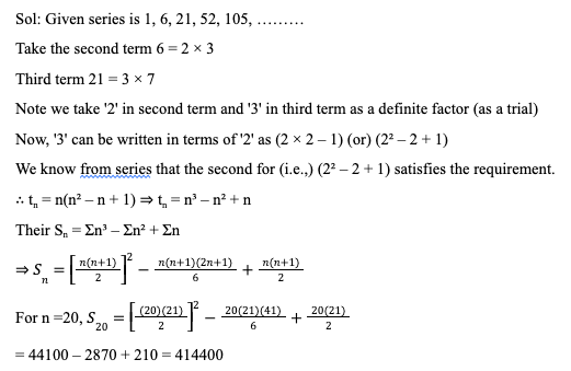 Q31. Find the sum of the first 20 terms of the series, 1, 6, 21, 52, 105, 186,……..
