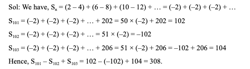 Q39. If Sn = 2 – 4 + 6 – 8 + 10 – 12 +… up to ‘n’ terms, then what is the value of S101 – S102 + S103?