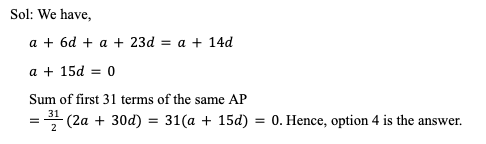 Q43. If the sum of the 7th and the 24th term of an AP is the same as its 15th term, then find the sum of the first 31 terms of the same AP.