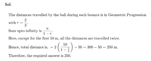 Q52. Rohit drops a ball vertically from the top of a 50 m high building. The ball bounces repeatedly, and goes up to a height which is (2/3)rd of the previous bounce.