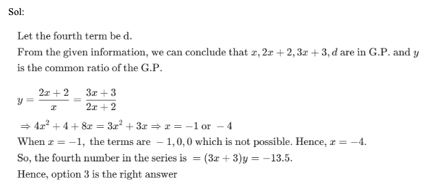 Q55. The number 2x + 2, which is the second term in a number series, is obtained by multiplying the number x, which is the first term of the same number series, by y. The third term in that number series is 3x + 3 and it is equal to 2(xy + y). In that number series, if the fourth term is obtained by multiplying the third term by y, then what is the fourth term of the number series? (All the numbers in that series are real numbers)